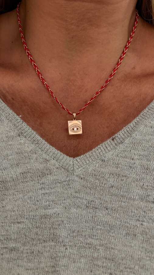 İTALYAN ZİNCİRLİ KIRMIZI ÖRGÜ GÖZ KOLYE