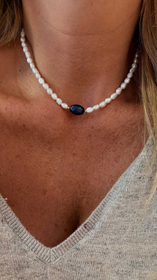 - Doğal Barok İnci ve Lapis Taşı Kullanılmıştır.