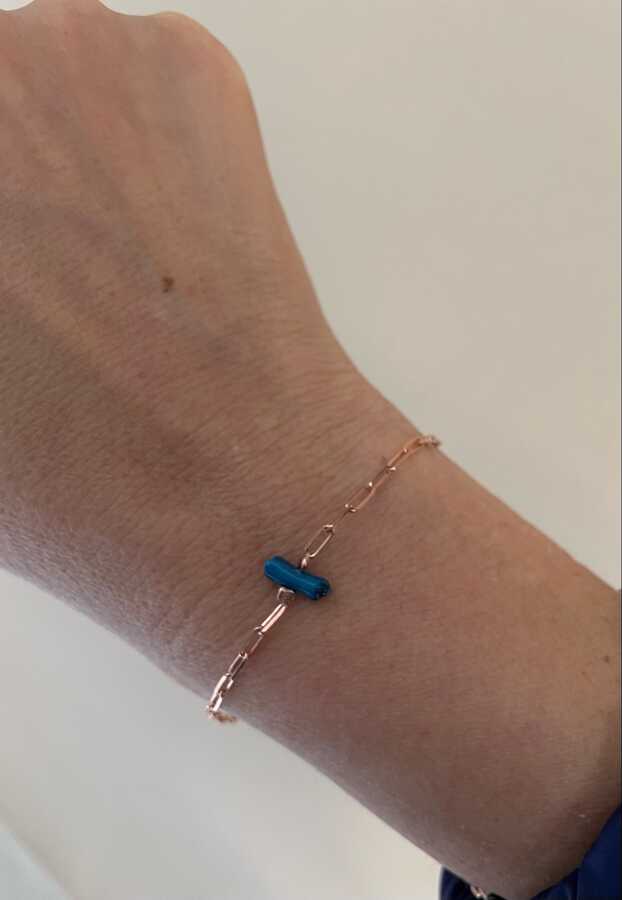 - 925 Ayar Gümüş Üzeri Rose Altın Kaplamadır. Doğal Mavi Dal Mercan Taşı Kullanılmıştır.
