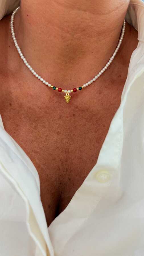 • Mayorka İncisi,Mercan,Malahit ve Hematit Taşı Kullanılmıştır.