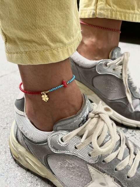 MERCAN VE TURKUAZ TAŞLI GOLD GÖZ HALHAL