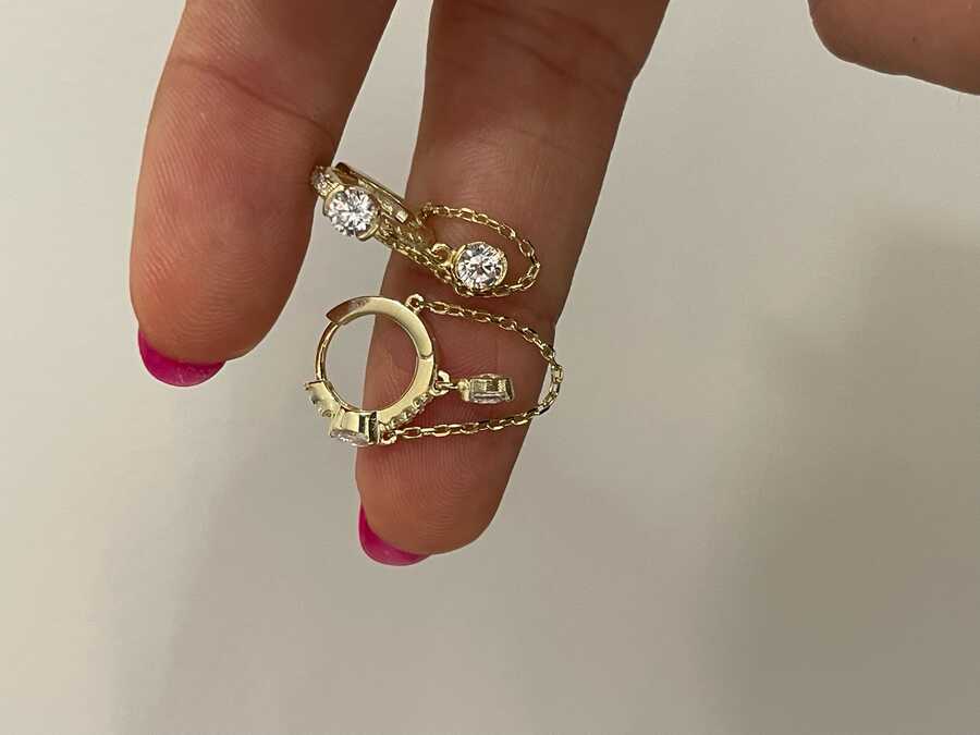 TEK TAŞ ZİNCİRLİ GOLD HALKA KÜPE