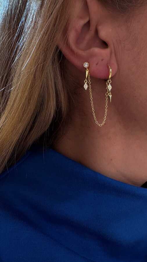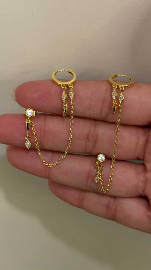 ZİNCİRLİ GOLD KÜPE ÇİFT